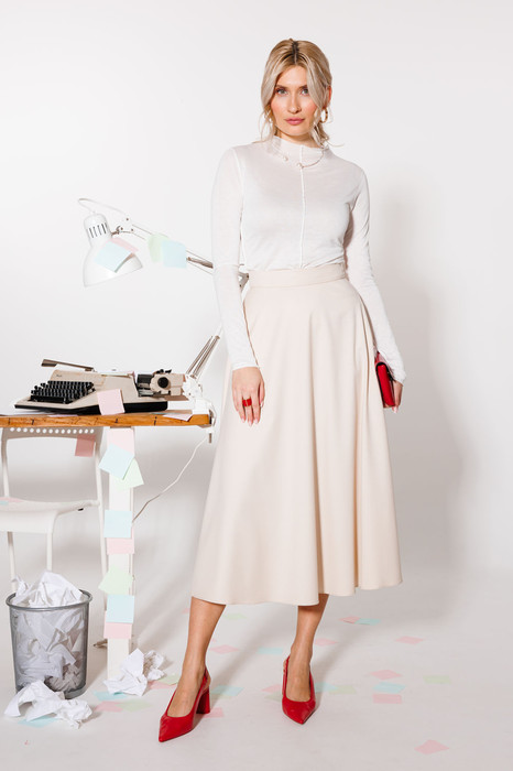 Лаконичная юбка-солнце длинной миди — дополните ее укороченным топом или заправленной рубашкой, чтобы подчеркнуть талию. Мы выбрали для модели гладкую поливискозу, чтобы она красиво струилась. В боковых швах расположены карманы.