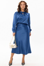 Юбка на кокетке с боковыми, функциональными, наклонными карманами. С боковой вставкой из отделочной ткани, шириной 2,7 см. По среднему шву юбки потайная застёжка-молния, внизу разрез. Верхний край юбки обработан обтачкой. Юбка на подкладке. Длина юбки по боковому шву: для р.44-48: 59,5 см; для р.50-52: 62 см.