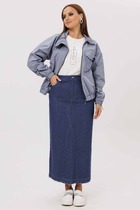 Юбка женская слегка зауженная к низу на притачном поясе со шлёвками, который застёгивается на прорезную петлю и пуговицу. По переду фигурный подрезы, застёжка на молнию с гульфиком и откоском и карманы. По спинке центральный шов, заканчивается разрезом, кокетка и накладные карманы. Юбка без подкладки. Украшают юбку двойные отделочные строчки.