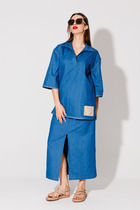 Vilatte Юбка из тончайшего футера на резинке и отделкой с открытыми срезами D46.
