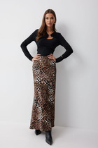 Юбка-карандаш прямого силуэта в длине миди. Верхняя юбка выполнена из костюмно-плательной ткани, пояс на обтачке, застёжка на потайную молнию в среднем шве по спинке. Нижняя юбка на резинке по поясу, низ обработан кружевной отделкой с сеткой. Для удобства движения сзади по юбкам обработаны разрезы