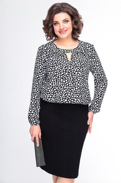 Юбка полуприлегающего силуэта на подкладке. По спинке юбки обработаны вытачки. Застежка на потайную молнию в среднем шве заднего полотнища юбки. Верх юбки обработан обтачкой. В среднем шве разрез. Длина 60 см (±1 см).