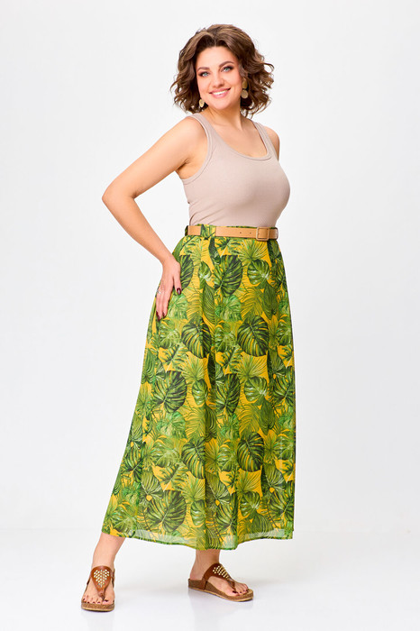 Юбка Swallow 753 зеленый+листья на желтом