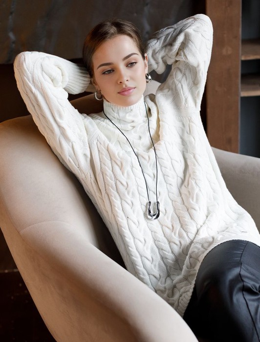 Совместные закупки Екатеринбург Женская одежда Джемперы, свитеры, водолазки — Удлиненный свитер фактурной вязки с узором косы