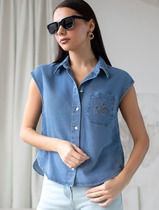 Совместные закупки Екатеринбург Женская одежда Костюмы, комплекты — Укороченная блузка с коротким рукавом из джинсового лиоцелла