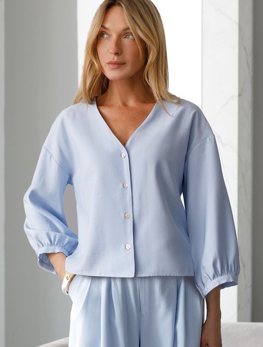 Укороченная блузка с V вырезом из плотного лиоцелла