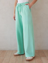 Теплые брюки с манжетами на резинке и боковыми карманами из мягкого набивного трикотажного футера трёхнитки. Пояс со шнурком позволяет регулировать посадку.