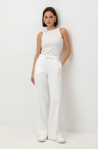 Трикотажные брюки с эластичным поясом, изготовленные из 100% хлопка, дарят ощущение комфорта и легкости. Имитация застежки и складки спереди придают изделию свободный силуэт. В сочетании с рубашкой-поло из этой коллекции, вы создадите стильный образ для теплых летних дней.