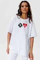 Vilatte Футболка из эластичного футера с авторским принтом D49.095 кофе_надпись