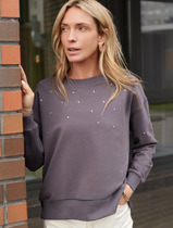 Vilatte Свитшот из эластичного футера с принтом стразами D49.072 т.серый_стразы