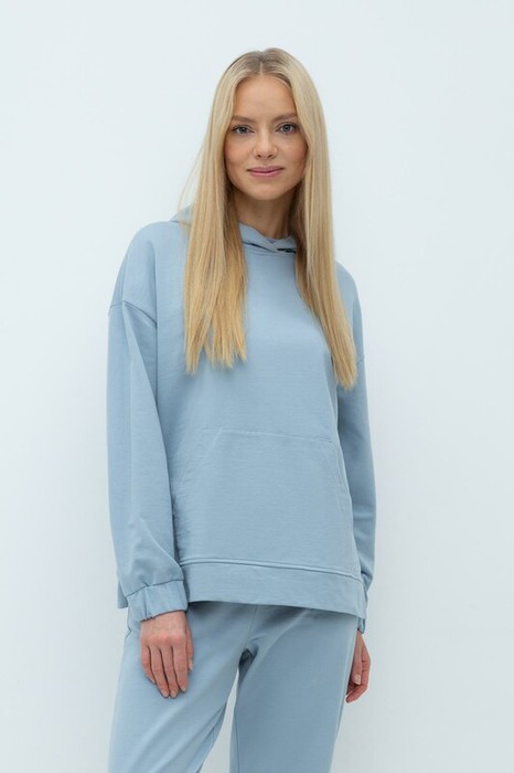 Теплая толстовка с капюшоном, карманом кенгуру и спущенным плечом из мягкого футера трехнитки. Уютный капюшон с подкладом из супрема. В боковых швах разрезы