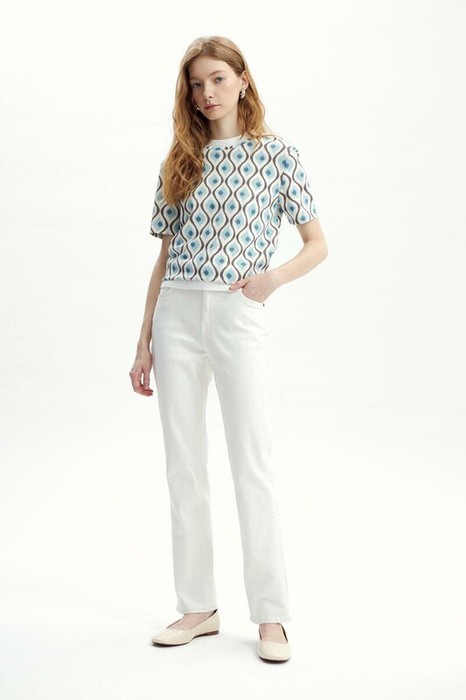Футболка прямого силуэта, изготовленная из премиального трикотажного полотна DOUBLE FACE. Мягкий на ощупь трикотаж выполнен из высококачественной гребенной пряжи, а его дизайн на основе восточных мотивов добавляет летнего настроения.
