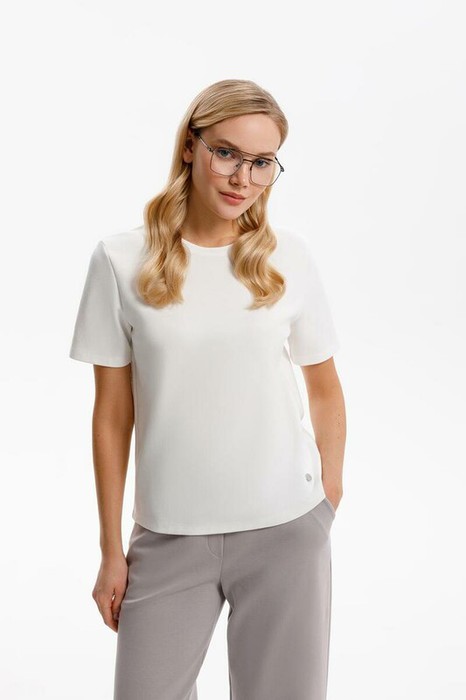 Футболка прямого силуэта, изготовленная из премиального трикотажного полотна DOUBLE FACE. Мягкий на ощупь трикотаж выполнен из высококачественной гребенной пряжи, а ее молочный оттенок добавляет летнего настроения.