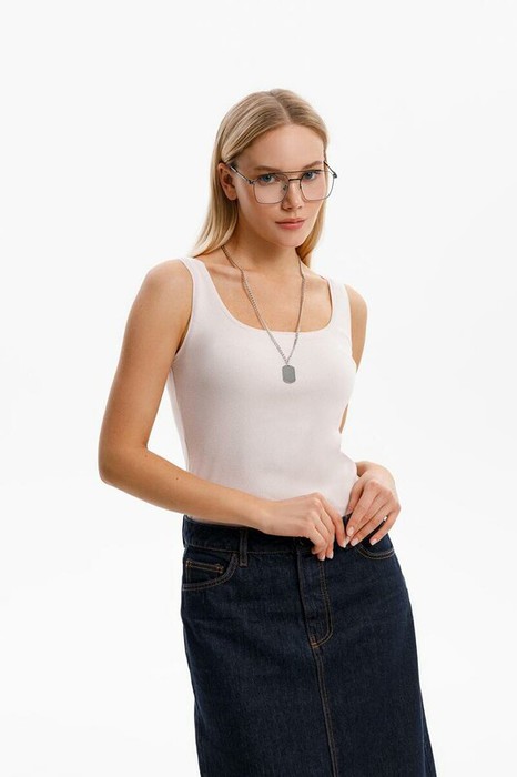 Классическим элементом гардероба является базовый топ в рубчик. Узкие бретели и глубокий вырез делают изделие комфортным в носке и универсальным в повседневной жизни.