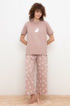 Very Neat пижама жен Е 20126/кофе с молоком,белые кролики