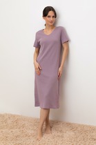 Комплект для комфортного сна и отдыха из трикотажного полотна в рубчик. Свободная футболка с V-образным вырезом. Брюки с мягким поясом на резинке удобно садятся по фигуре.
