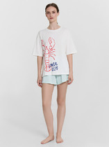 Комплект приглушенного синего оттенка выполнен из хлопка с нежнейшим модалом. Свободный крой футболки и мягкий пояс брюк обеспечивают легкость и свободу движений.