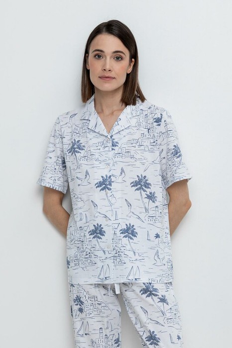 Совместные закупки Екатеринбург Женская одежда Домашняя одежда — Very Neat рубашка жен Е 30082/белый,морской пейзаж