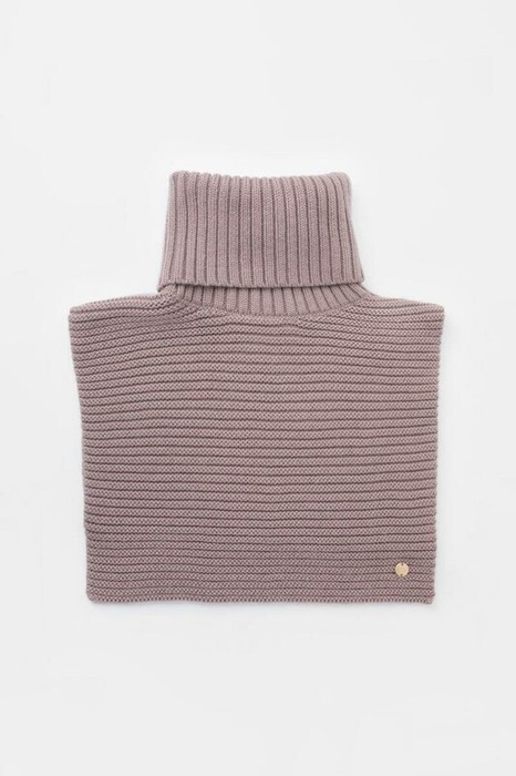Уютная вязаная манишка с высоким воротником из шерсти и акрила. Шерсть в составе хорошо удерживает тепло, а волокна акрила делают изделие мягким и предотвращают деформацию и появление катышек. Лаконичный крой хорошо сочетается с верхней одеждой.