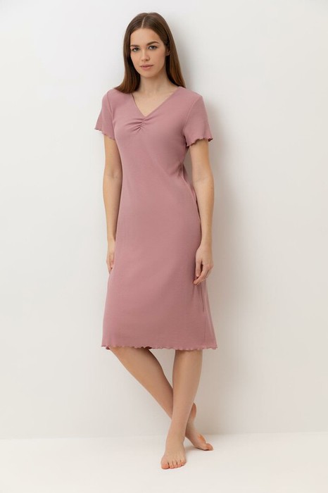 Комфортная сорочка  выполнена из  высококачественного трикотажа в рубчик. Свободный крой добавляет комфорта во время сна.