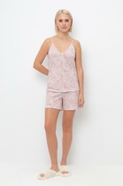 Уютная удлиненная сорочка с короткими рукавами из 100% натурального хлопка. Выполнена из набивного трикотажа супрем с нежным рисунком. На груди застегивается на пуговицы. Все трикотажные полотна производятся в соответствии с нормами Швейцарского сертификата ЭкоТекс. Сделано в России