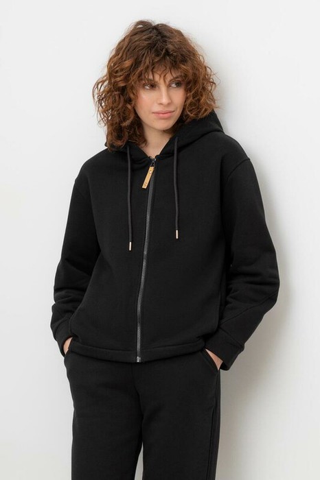 Тёплая трикотажная куртка на молнии с глубоким капюшоном. Произведена из мягкого трикотажного футер трёхнитки с начёсом. В составе 80% натурального хлопка и 20% полиэстера, при этом полиэстер ввязан внутрь по особой технологии и не соприкасается с кожей. В капюшоне мягкий подклад.