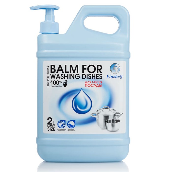 Эффективное средство для мытья посуды и кухонных принадлежностей Finshelf. Удаляет жир даже в холодной воде. Ухаживает за кожей рук.