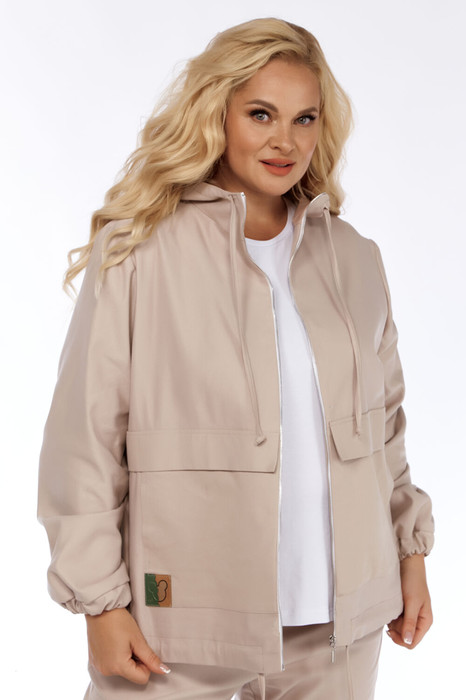 Ветровка женская свободного силуэта, застежка молния, рукав длинный втачной с манжетом на резинке, на полочке обработаны накладные карманы, на подкладке, с капюшоном. Длина ветровки по спинке 65 см.