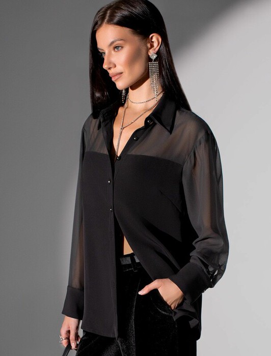 Совместные закупки Екатеринбург Женская одежда Блузки, рубашки — Vilatte Блузка полупрозрачная из креп шифона D29.294 черный