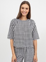 Vilatte Блузка свободного силуэта с золотистыми пуговицами D29.274 черный-белый