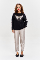 Брюки выполнены из мягкого хлопкового микро-вельвета с добавлением эластана. Изделие комфортно садится по фигуре и не сковывает движения. Модель с пятью карманами, как у джинсов-скинни дополнена высококачественной фурнитурой с фирменным логотипом бренда. Хорошо комбинируется с вязаным трикотажем, блузками и денимом. Как альтернатива брюкам, в нестрогий офисный дресс-код.