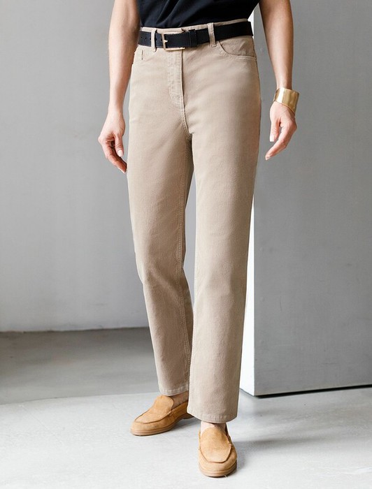 Брюки выполнены из мягкого хлопкового микро-вельвета с добавлением эластана. Изделие комфортно садится по фигуре и не сковывает движения. Модель с пятью карманами, как у джинсов-скинни дополнена высококачественной фурнитурой с фирменным логотипом бренда. Хорошо комбинируется с вязаным трикотажем, блузками и денимом. Как альтернатива брюкам, в нестрогий офисный дресс-код.