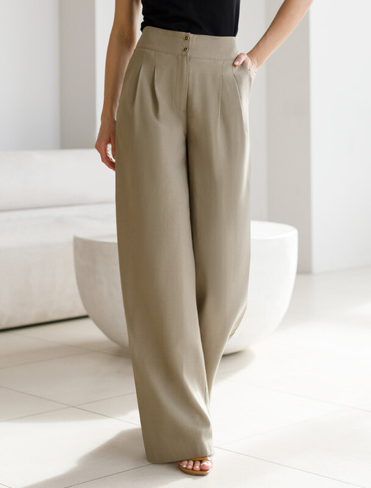 Совместные закупки Екатеринбург Женская одежда Брюки — Vilatte Брюки-палаццо из плотного лиоцелла D24.267 св.оливковый