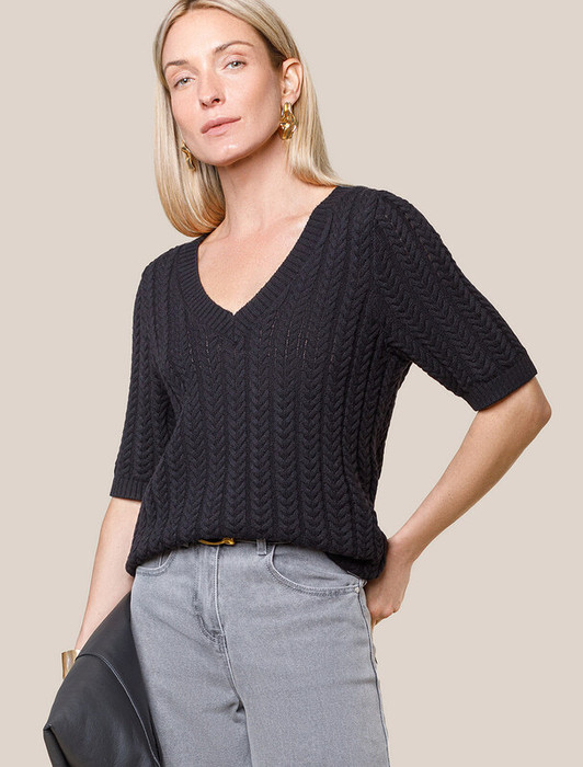 Совместные закупки Екатеринбург Женская одежда Джемперы, свитеры, водолазки — Vilatte Джемпер фактурной вязки из хлопка с кашемиром D39.349 черный
