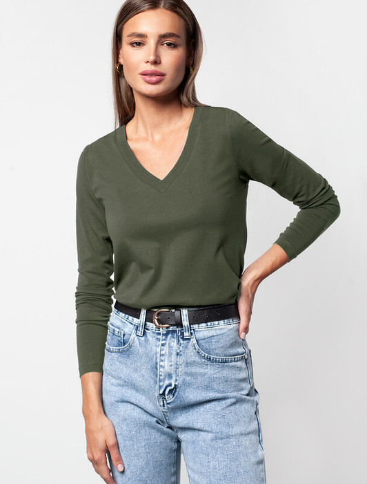 Совместные закупки Екатеринбург Женская одежда Джемперы, свитеры, водолазки — Vilatte Джемпер из премиального хлопка с эластаном D49.958 темно-оливковый