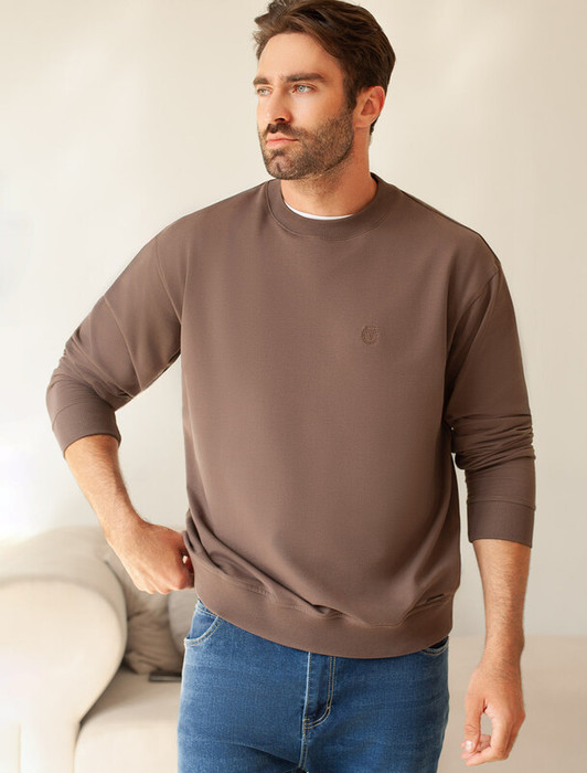 Совместные закупки Екатеринбург Мужская одежда Джемперы, свитеры — Vilatte Джемпер из тонкого премиального футера с эластаном U49.067 кофейный