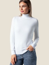 Джемпер прямого силуэта с цельнокроеным воротом выполнен из премиального хлопка. Наличие эластана в составе гарантирует комфорт и формоустойчивостиь изделия. Вертикальный декоративный шов спереди, визуально вытягивает силуэт. Базовая модель хорошо впишется в любой гардероб и подойдет для офисного дресс-кода. К изделию пришит металлический логотип бренда.