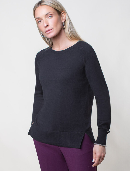 Vilatte Джемпер тонкой вязки из хлопка с кашемиром D39.350 черный