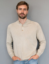 Для изготовления светло-синего джемпера с воротом, застегивающимся на молнию, использовали мягкий трикотаж, связанный из премиального хлопка с добавлением акрила. Двуслойное жаккардовым плетение, вязка с фактурой типа «пике», благодаря чему джемпер имеет среднюю плотность, эластичноть и, при этом, формоустойчивость. Греет за счет иск.шерсти (ПАН) в составе, а премиальный хлопок помогает защитить изделие от скатывания. Такой состав гигроскопичен, греет, но абсолютно не колет.