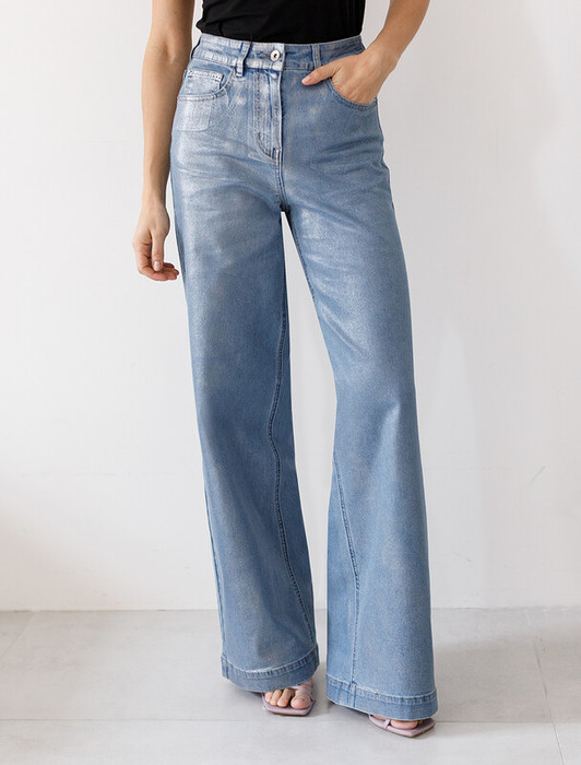 Совместные закупки Екатеринбург Женская одежда Джинсы — Vilatte Джинсы-трубы с металлизированным покрытием D54.219 голубой-серебряный