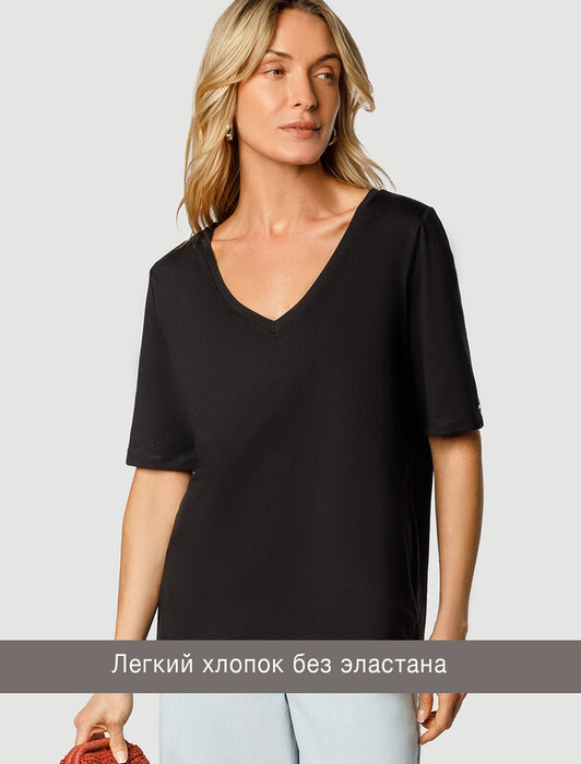 Совместные закупки Екатеринбург Женская одежда Футболки — Vilatte Футболка из 100% хлопка с V-образным вырезом D49.091 черный