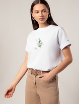 Футболка выполнена из премиального хлопка. Базовая модель, которая хорошо будет сочетаться в гардеробе с любым низом и за счет посадки по фигуре, любым дополнительным верхом вне зависимости сезона. Эластан в составе способствует формоустойчивости и меньшей сминаемости. Изделие украшено логотипом бренда.