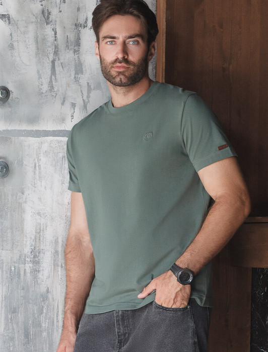 Совместные закупки Екатеринбург Мужская одежда Футболки — Vilatte Футболка из премиального хлопка с эластаном U49.009 т.оливковый