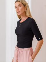 Футболка выполнена из трикотажа в широкий рубчик. Базовая модель с круглым вырезом и рукавом до локтя. Эластичный хлопковый трикотаж сидит по фигуре, не сковывает движений и очень комфортный в носке. Фактура вертикальных полос визуально стройнит и вытягивает силуэт. Базовое изделие хорошо впишется в любой гардероб. Идеально подходит для многослойных образов в базовый гардероб.