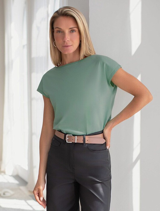 Совместные закупки Екатеринбург Женская одежда Футболки — Vilatte Футболка с цельнокроеным рукавом D49.088 св.оливковый