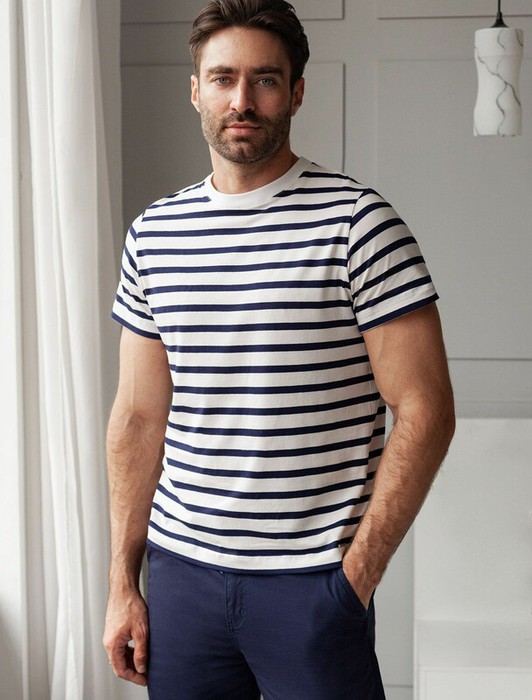 Vilatte Футболка U49.983 белый-т.синий полоса