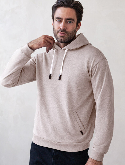 Совместные закупки Екатеринбург Мужская одежда Толстовки — Vilatte Худи из эластичного футера трехнитки с эффектом меланж U49.039 св.кофейн