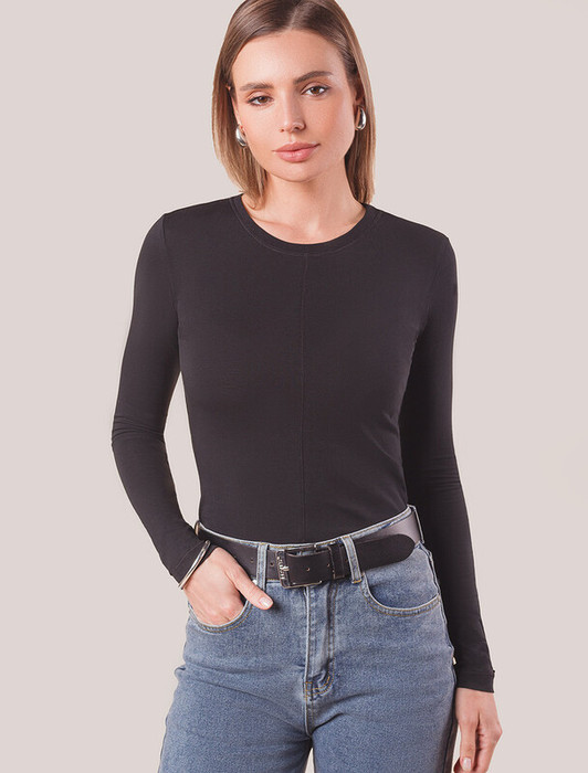 27.03 Vilatte Лонгслив из премиального хлопка с эластаном D49.116 черный