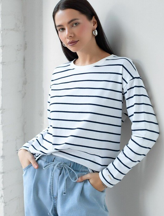 Совместные закупки Екатеринбург Женская одежда Джемперы, свитеры, водолазки — Vilatte Лонгслив с принтом из премиального хлопка с эластаном D49.148 белый-т.си