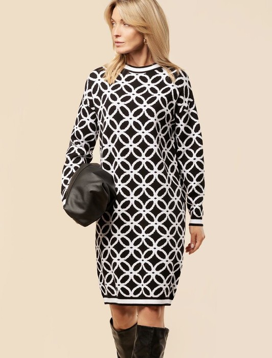 Vilatte Платье двуслойной жаккардовой вязки с кашемиром D32.056 черный-белый